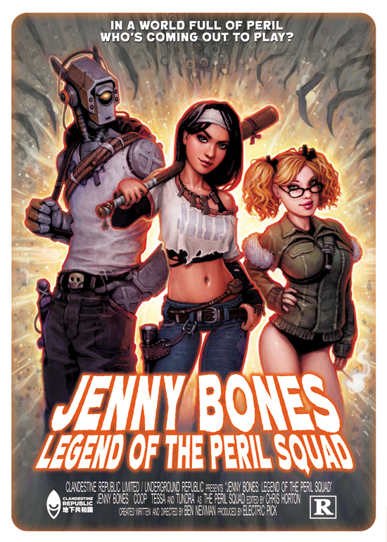 Jenny Bones, her robot boyfriend Coop and her slacker best friend Tessa are the Peril Squad. Along with their loyal pet Tundra they live a happy-go-lucky life of treasure hunting and partying, until the discovery of an ancient artifact that accidentally sets off a process that could very well spell the end of time itself...